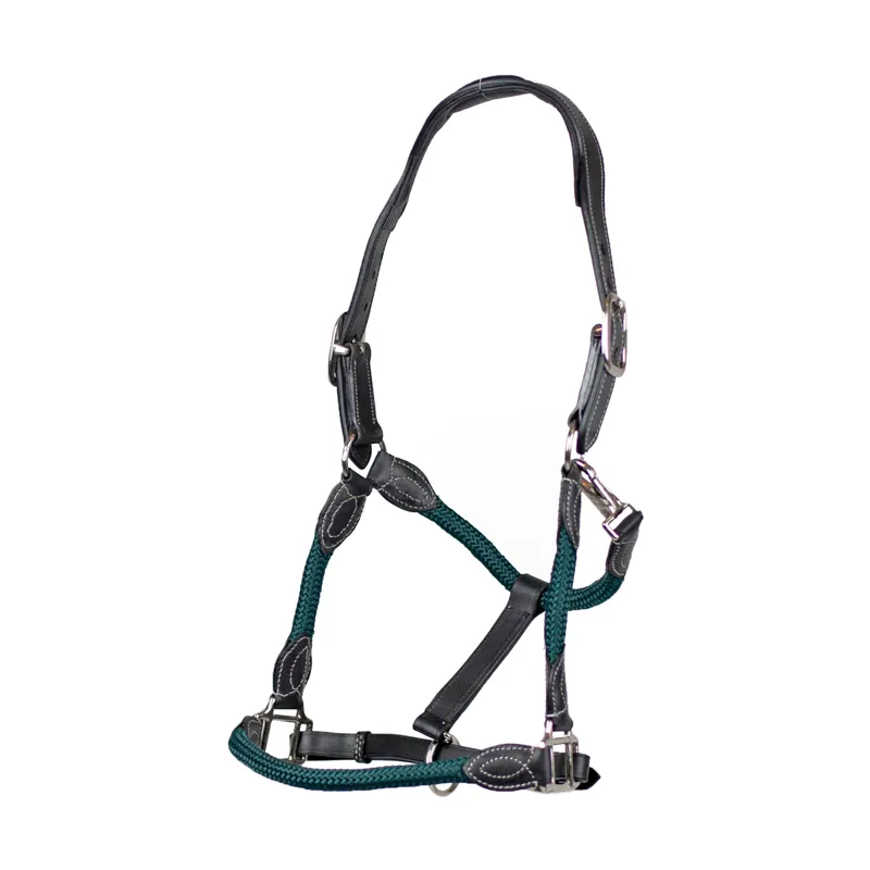 Designed for comfort and control, Cameo Anatomic leather headcollars are made using a strong yet soft rope to allow greater control with leather attachments onto attractive metal fittings. The fittings are chosen to compliment the colour of rope and leather. The Anatomic headpiece is soft and shaped with an ear cutaway to alleviate pressure from the nerve sensitive lower ear. Complete with a trigger hook for ease of use.