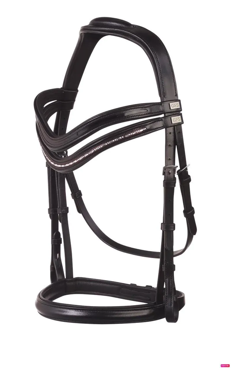The GFS Simplicity bridle features a padded cavesson noseband that is slightly wider than the average noseband to distribute pressure on the horses face. The bridle boasts an anatomically shaped headpiece with a comfort pad insert for maximum comfort for the horse avoiding the ears and distributing pressure evenly. This bridle comes with extremely soft and flexible rubber grip reins and a free crystal browband.