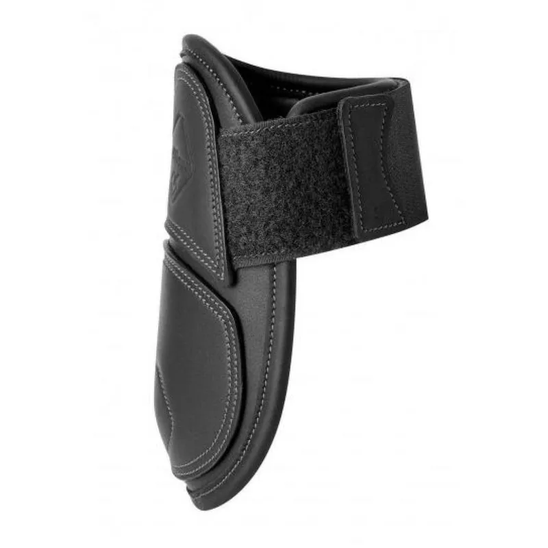 Classical style with cutting edge protection. These leather fetlock boots are made from top-quality soft leather that moulds beautifully to the leg. The stitching detail defines the key anatomic sections whilst the soft contoured top is cut back to allow no restriction on the tendon when jumping. Designed with low friction EVA lining, these boots give style, performance and function. Double lock velcro straps ensure the perfect fit and adjustability.