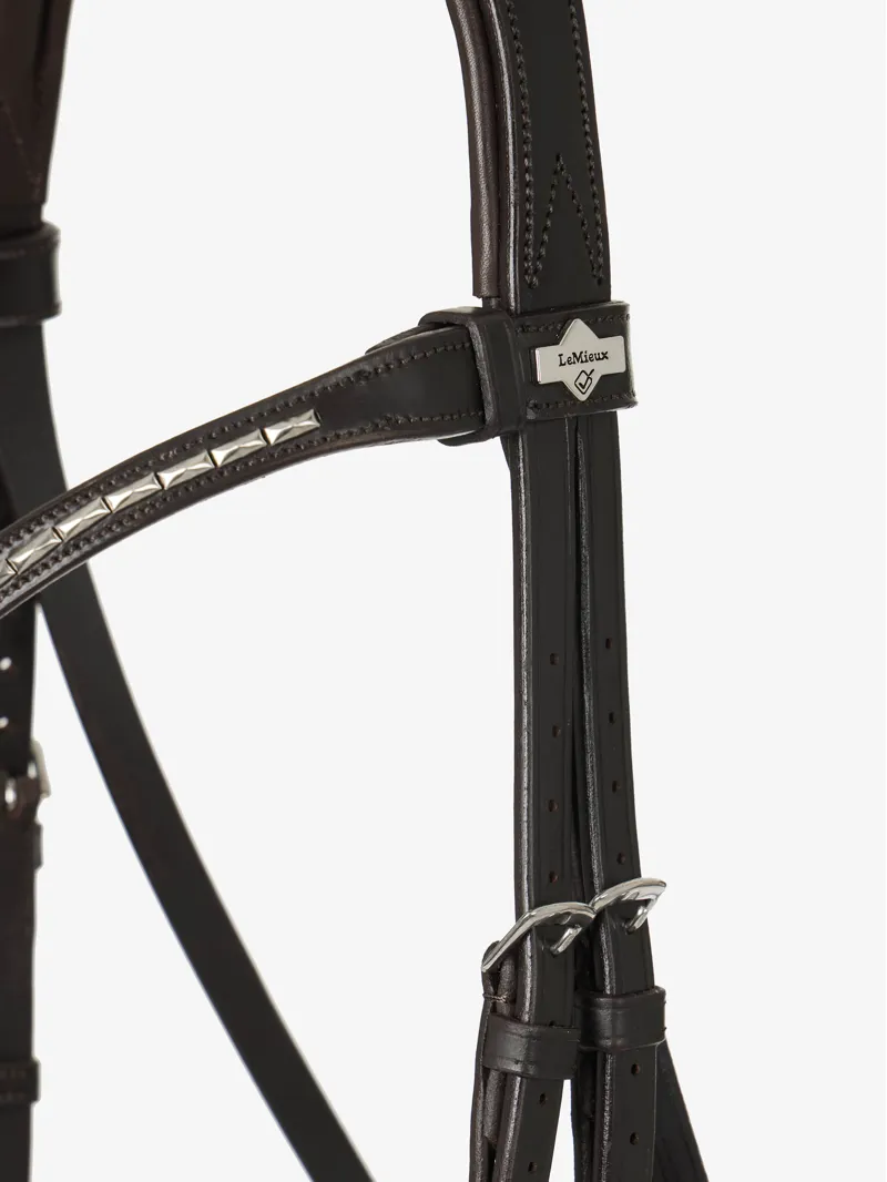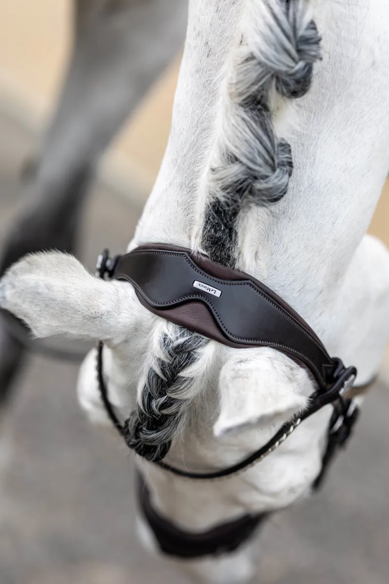 The LeMieux Dressage bridle is a classic example with a contemporary twist and is just made for the ring. The delicate, detachable clincher browband is anatomically shaped and complements the statement padded crank noseband beautifully.