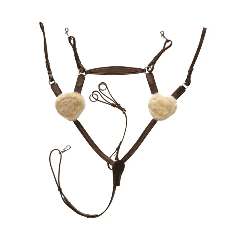 The Mark Todd 5 Point Breastplate is made from soft leather with stainless steel buckles, adjustable running martingale attachment and sheepskin shoulder pads with elastic inserts.