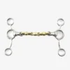 A showjumping favourite that sits them on their hocks and helps make tight turns. Designed for extra control, outline and much more help with straightness and turning. Often the answer for the very enthusiastic horse with a sensitive mouth that may even be prone to rubs, chafing etc. A curb strap may be employed on the top ring for extra control. Often used as a flat work training tool on the main ring to mimic the Baucher.