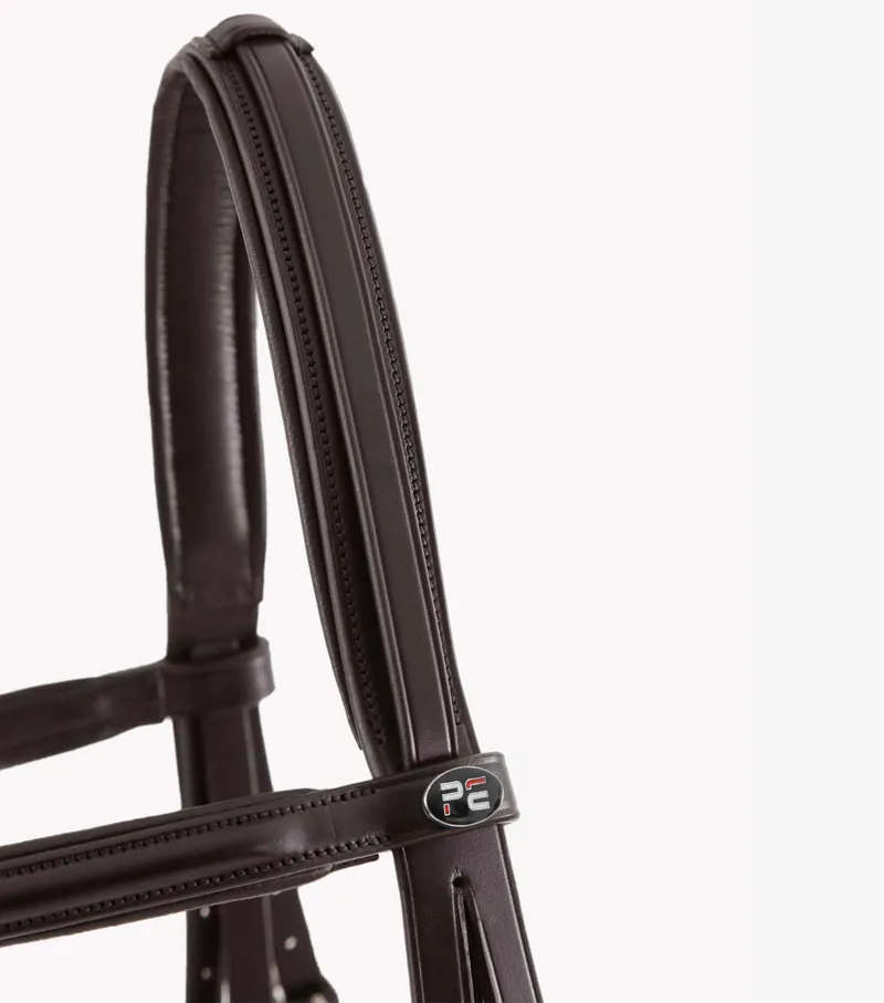• Soft padded browband with round raised design and ‘PE’ branded brooch either side