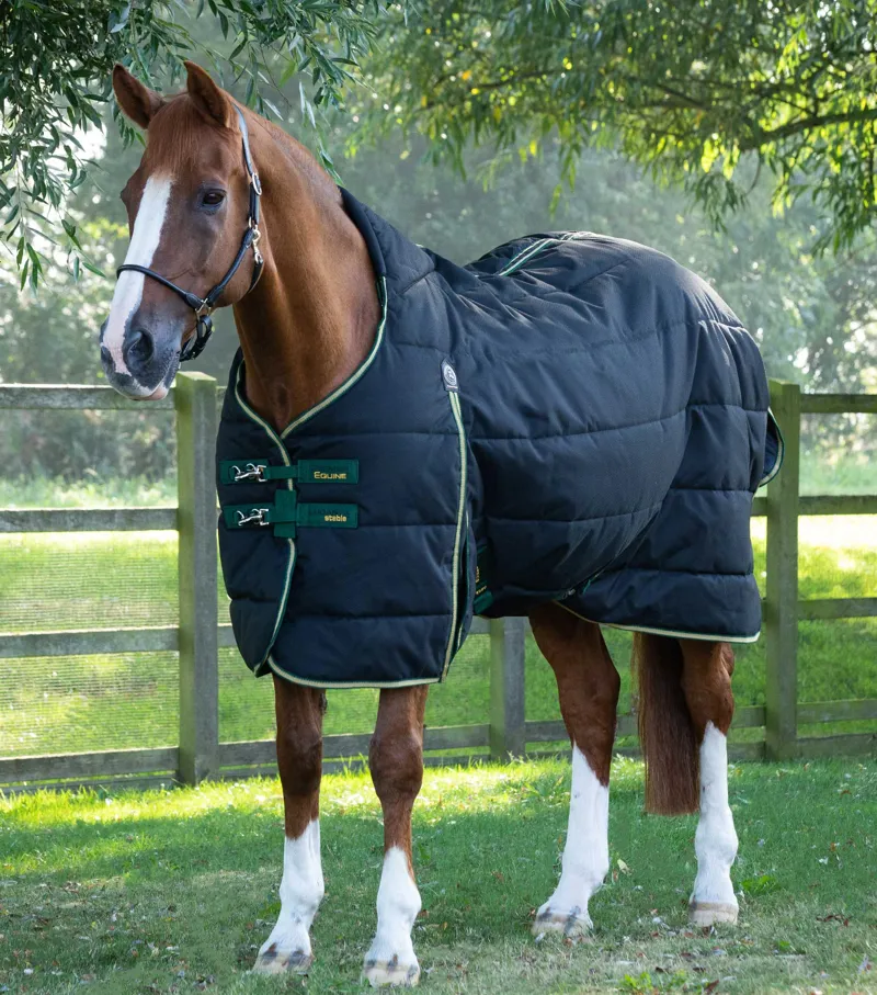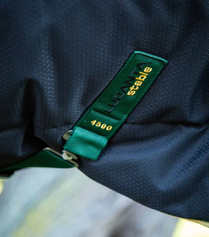 Crafted from breathable 600D diamond weave polyester. The Lucanta Demi Stable 450 features a forward cut neckline, which incorporates two integrated wither pads that sit strategically on either side of the spine to distribute pressure over a larger area. A great choice for stabled horses who suffer from sore withers or have pronounced withers, the Lucanta Demi Stable Rug will keep your horse cosy with a 450g thermo bonded fill and help to regulate their temperature. This classic styled, simplified horse stable rug does not have neck cover attachments, ideal for stabled horses who prefer a rug without a neck.