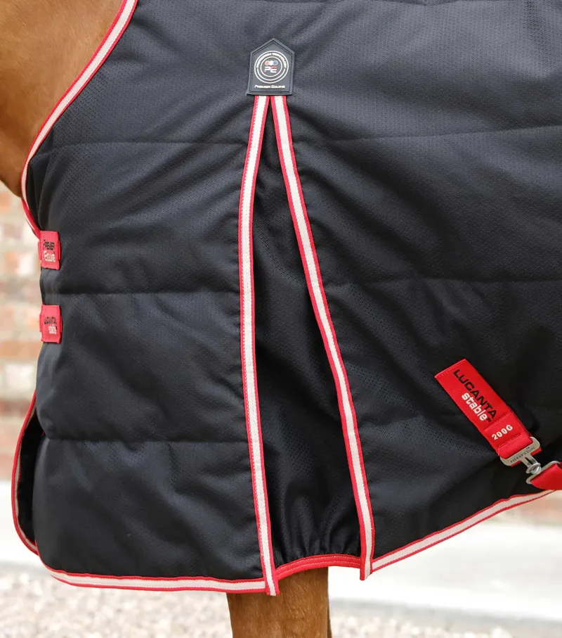 The Lucanta Demi Stable 200 features a forward cut neckline, which incorporates two integrated wither pads that sit strategically on either side of the spine to distribute pressure over a larger area. A great choice for stabled horses who suffer from sore or have pronounced withers. The Lucanta Demi Stable Rug has been crafted from a breathable 600D diamond weave polyester and has a 200g thermo bonded fill which helps to regulate their temperature. A refined, classic design is finished elegantly with contrast seamlines.
