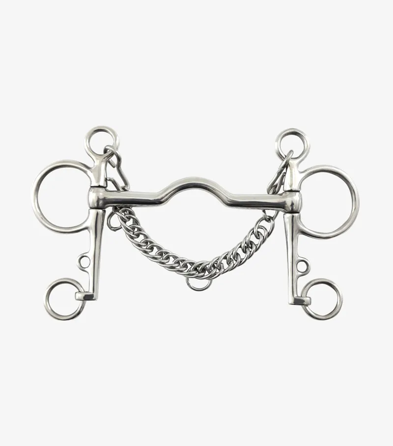 Pelham’s have been designed to be used with two reins, one attached to the top ring (snaffle) and one attached to the bottom loose ring (curb), which is used when needed for extra leverage. Can also be used with rounding’s attached to a single rein so that the mouthpiece and the curb come into action at the same time.