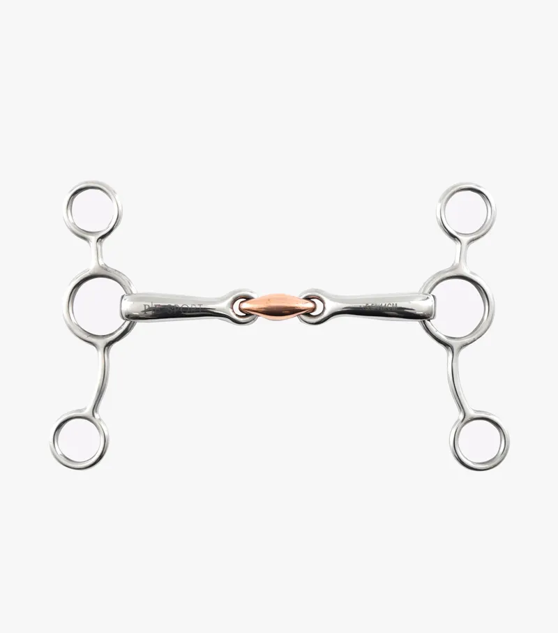 The lozenge in the centre of this bit contours the shape of the tongue and helps to reduce the nutcracker action of a single jointed bit which helps form a soft contact, allowing clear aids to be given down the reins. Copper is a warm metal which encourages salivation and mouthing on the bit. A useful bit for horses that tend to lean against the riders hands.