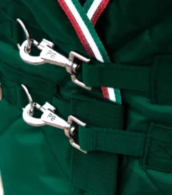A high quality stable rug thatprovides excellent protection has been crafted in a breathable 420D ripstop polyester which acts as a barrier to your horse’s coat to repel dust, dirt and stains. The 100g technical thermo bonded fill helps to regulate your horse’s temperature, delivering comfort, protection and warmth when needed. The quilting of the fabric layers gives this rug a cosy aestheticand the anti-static polyester lining helps to prevent rubbing and is comfortable against your horse’s skin. Complete with quick release chest clips and cross surcingles, this stable rug is a must-have for milder months.