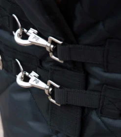 A high quality stable rug thatprovides excellent protection has been crafted in a breathable 420D ripstop polyester which acts as a barrier to your horse’s coat to repel dust, dirt and stains. The 200g technical thermo bonded fill helps to regulate your horse’s temperature, delivering comfort, protection and warmth when needed. The quilting of the fabric layers gives this rug a cosy aestheticand the anti-static polyester lining helps to prevent rubbing and is comfortable against your horse’s skin. Complete with quick release chest clips and cross surcingles, this stable rug is a must-have for milder months.