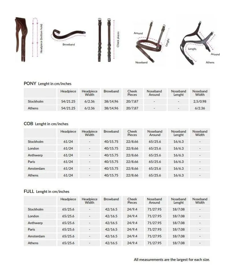 The browband has our new, convex PS-button with an extra sturdy clasp that keeps the browband in place and shapes the leather backward and down.