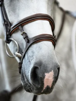 This is a bridle for the experienced rider and the noseband is used instead of having to put a sharper bit in the horse’s mouth. The noseband is made for very strong and forward going horses, it combines the function from an English- and a dropped noseband and surrounds the horse in a nice way, offering plenty of stability. It has a super soft pillow built-in that reduces pressure and enables a closer, optimized fit around the nose. The bottom part of the noseband is adjustable in four steps and can, therefore, be adjustable in height to ensure the perfect fit and prevent pressure on the nostrils and air channel.