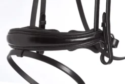 BRANTFORD combines functionality and sporty design: The bridle with ananatomically shaped crank noseband has a unique neck piece. This was specifically adapted to the horse’s anatomy and allows unconfined movement of the ears. Due to the reduction of pressure in sensitive areas around cheekboneand neck, the comfort of the horse is considerably enhanced.