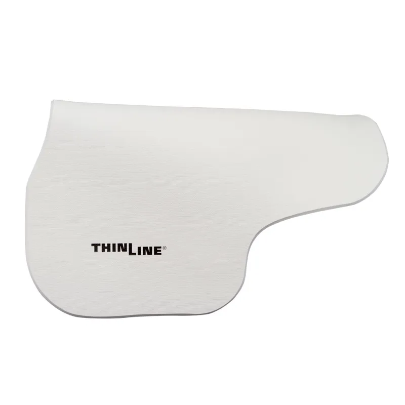 Ultra ThinLineis our thinnest shock-absorbing saddle pad.Fitting a wide variety of saddle shapes and sizes, itwill bethe most versatile pad in your tack room. Thoughtfully designed to protect both horse and rider’s backs andcreate a soft, quiet, elastic connection. If your riding is not in a place where you can focus on nuances, you should likely start in a ThinLine.If you are a close contact rider, you will greatly appreciate Ultra ThinLine. This product reduces rider movement so horses can balance and focus.It does not amplify the seat, it reduces“background noise” so the rider’s seat aids are clear.